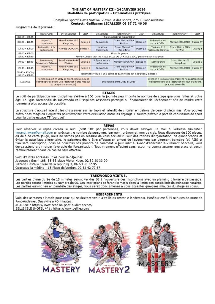 THE ART OF MASTERY 3 : Samedi 24 janvier 2026 - Une proposition du club Horangi Kwan
